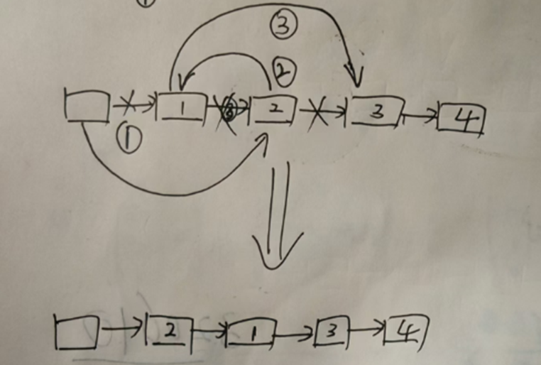 给你一个链表,两两交换其中相邻的节点,并返回交换后链表的头节点。你必须在不修改节点内部的值的情况下完成本题(即,只能进行节点交换)。