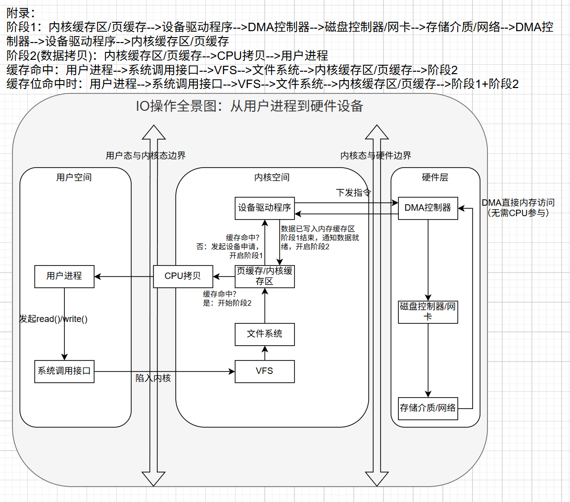 | 阶段②:数据拷贝 | CPU将数据从内核缓冲区复制到用户进程内存 | 短(微秒级) | 次要优化点 |