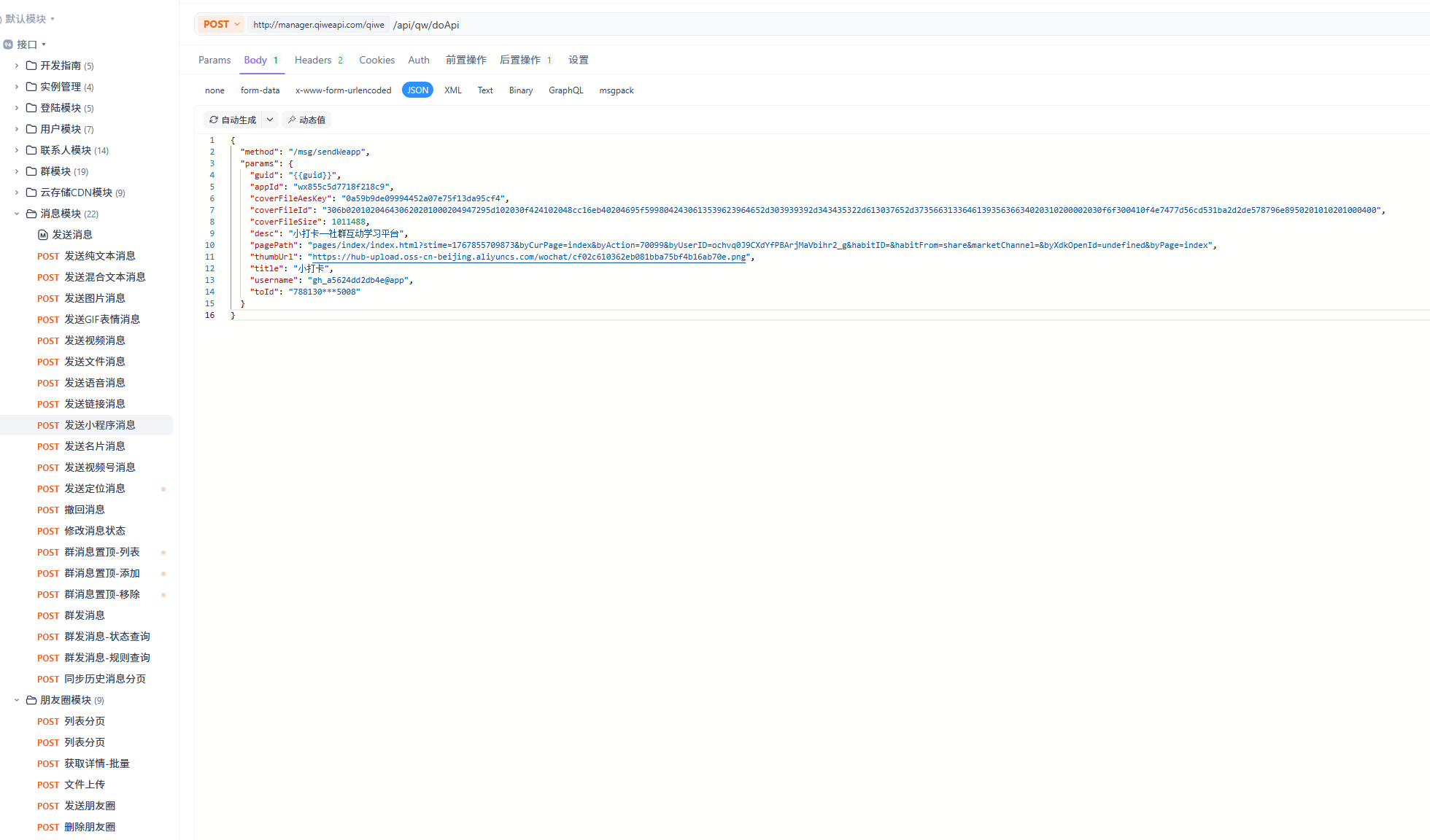 "method": "/msg/sendWeapp",
