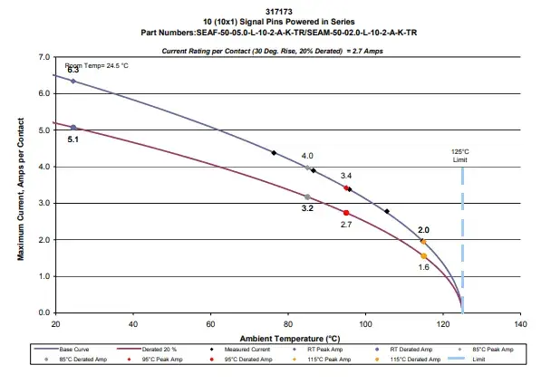 为确保安全性和可靠性,Samtec按照行业标准EIA-364-70《温升与电流关系》 ,在可控环境下测试载流量。
