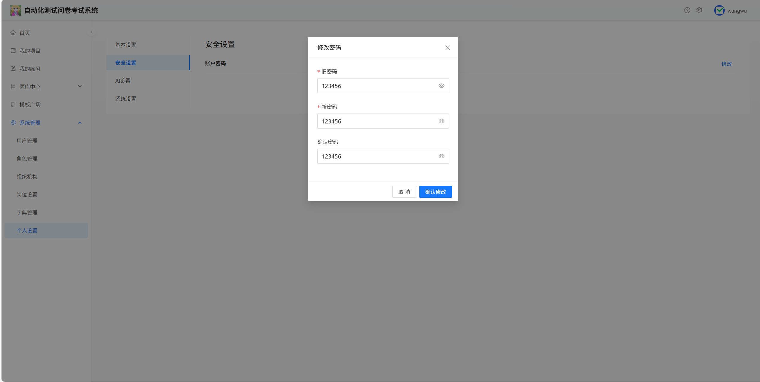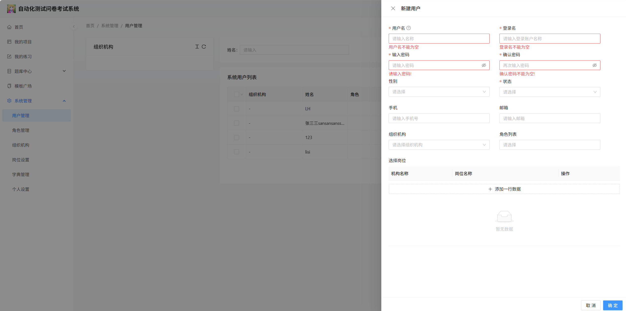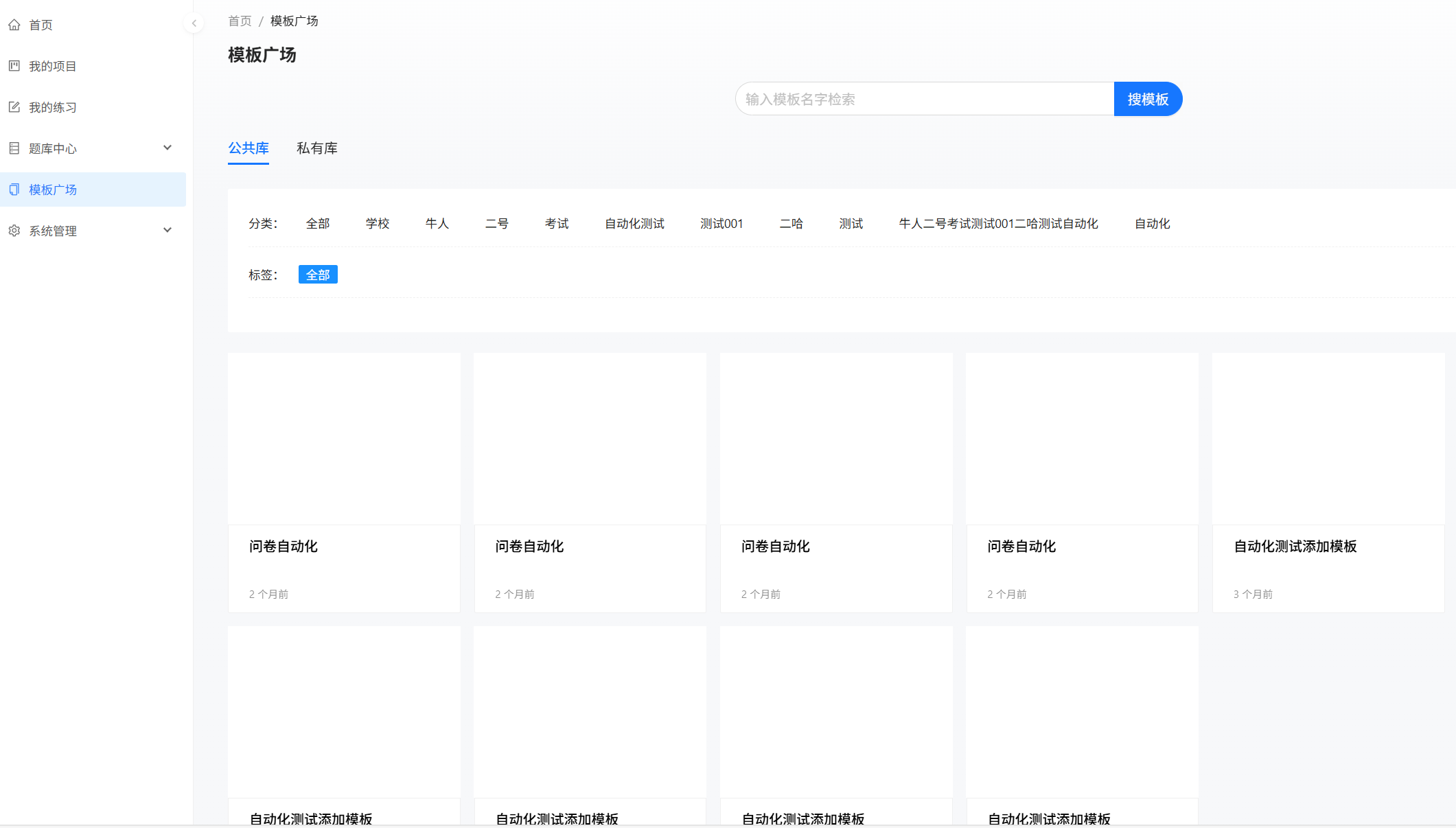 本项目旨在对一款基于Web的问卷考试系统进行全面自动化测试,确保系统功能的完整性、稳定性和用户体验。该系统集成了用户管理、题库管理、考试练习、模板管理、系统设置等多个核心模块,支持多样化的在线评估需求。