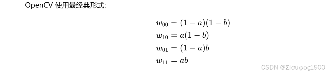 = (1. - u) * (1. - v) * src.at<Vec3b>(top_y, left_x)[k]