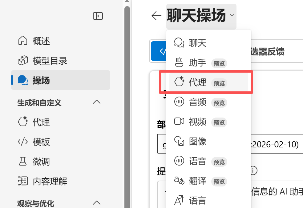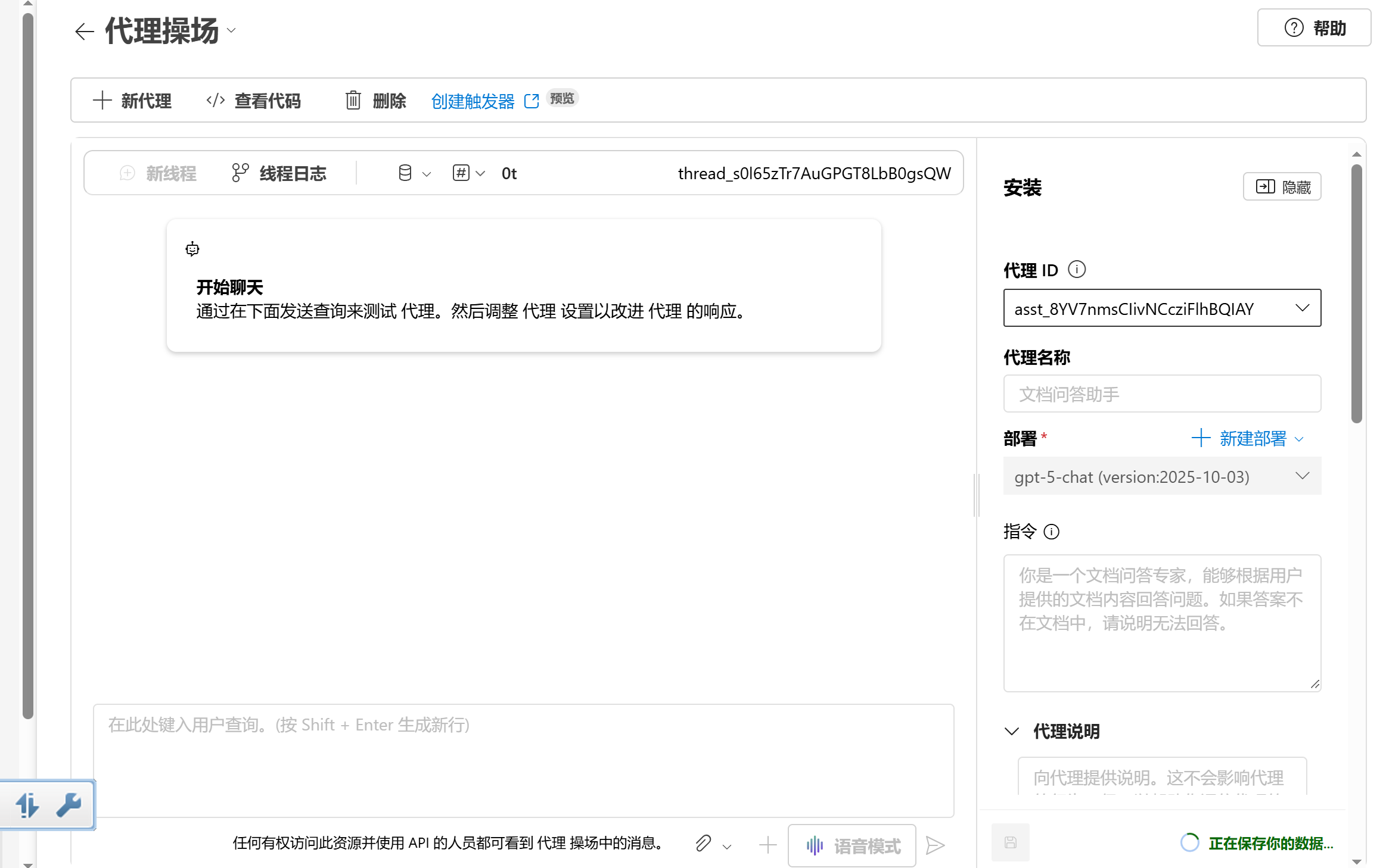 在聊天操场中,我们主要是在当前界面进行聊天,但是到实际使用时,还是需要使用代理, 它的核心是创建和管理智能代理(Agent),是平台的核心功能。