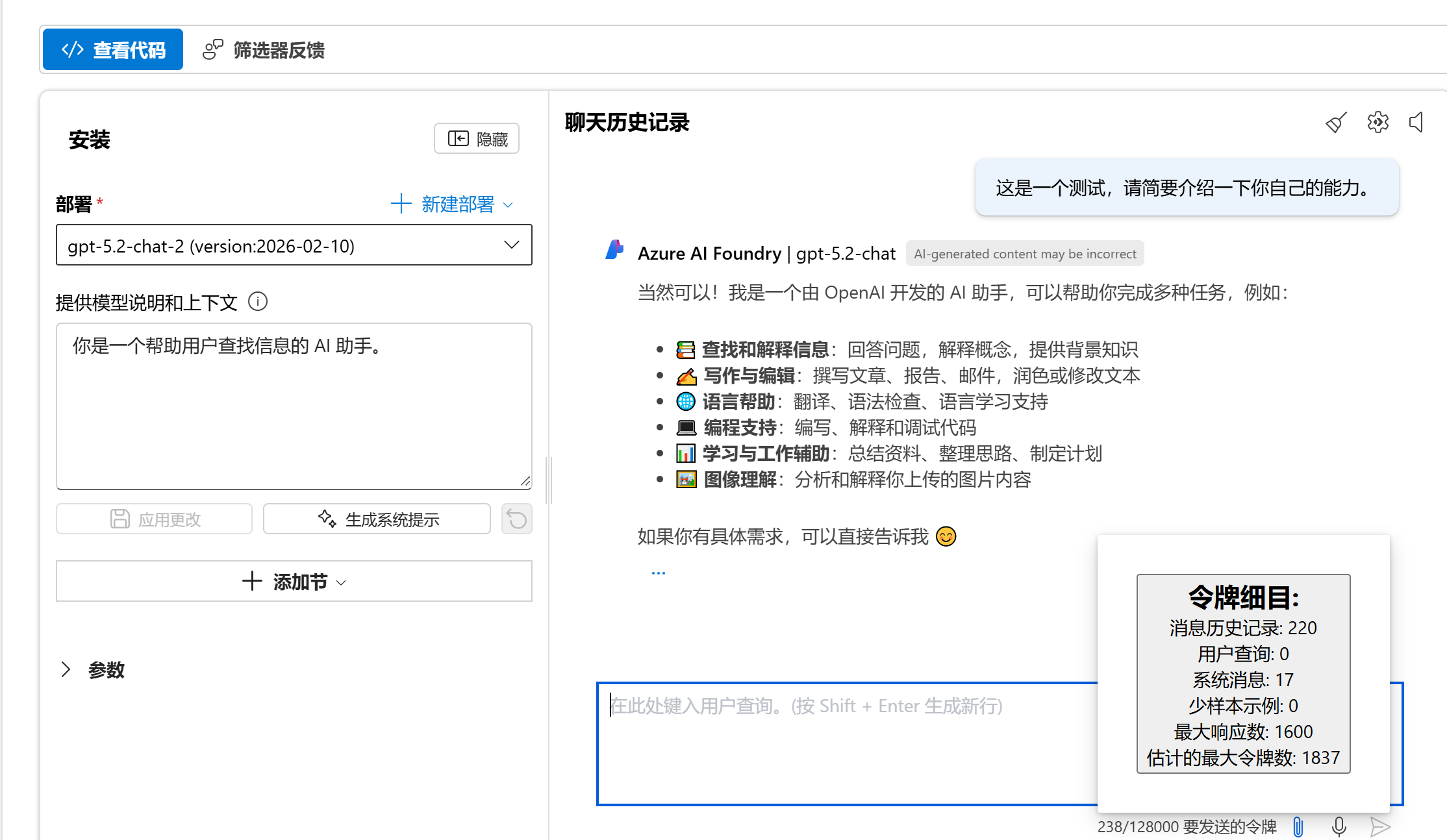 本文快速演示了Azure AI Foundry的简单使用,后续将会使用它做更多的实验。