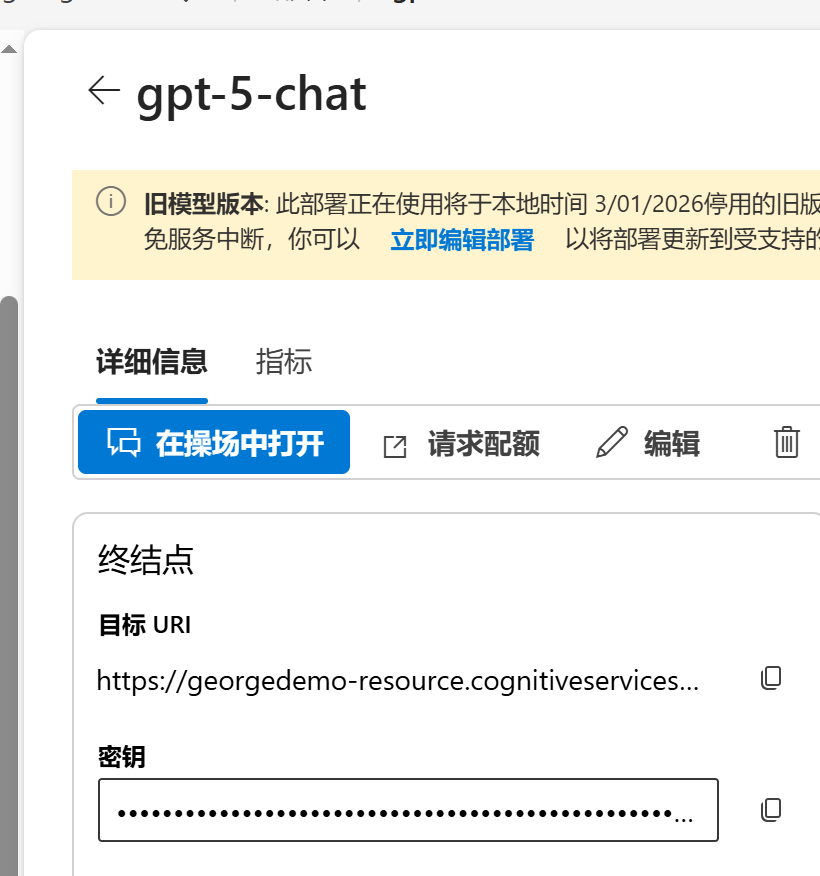 调用代理需要获取模型的终结点(endpoints)信息,可以从下图处查找: