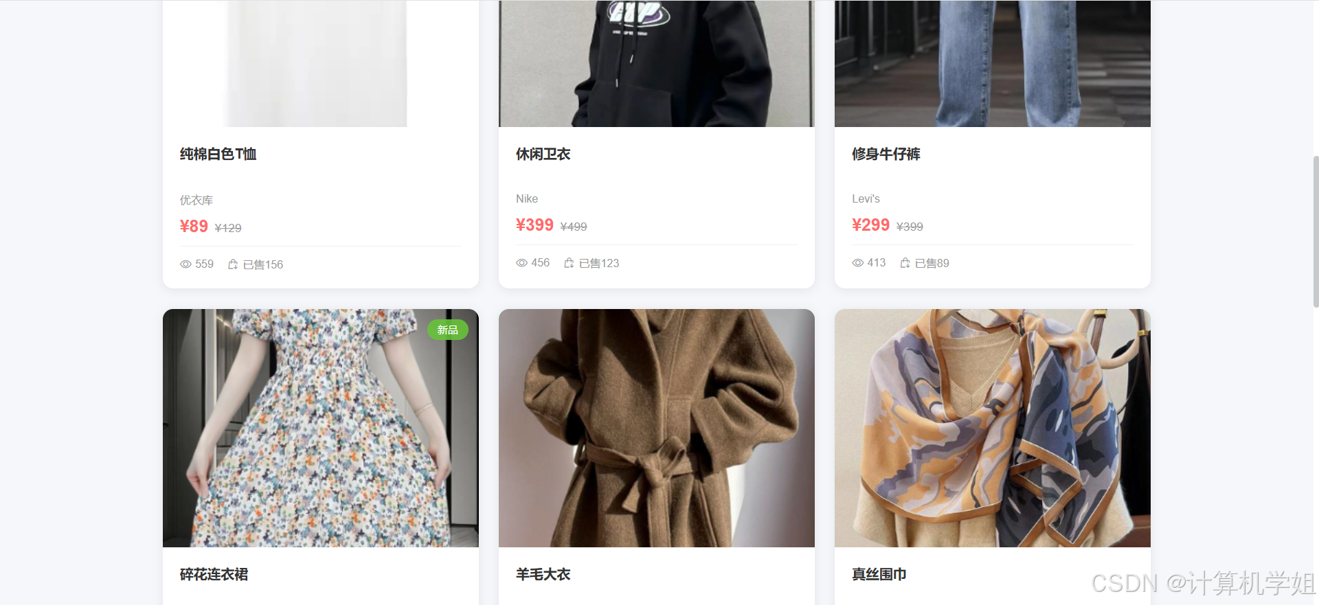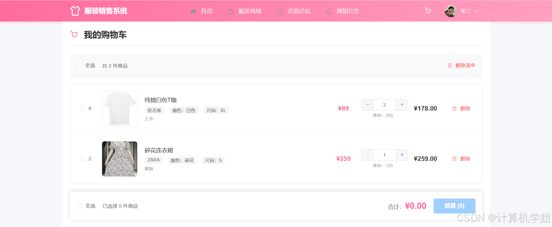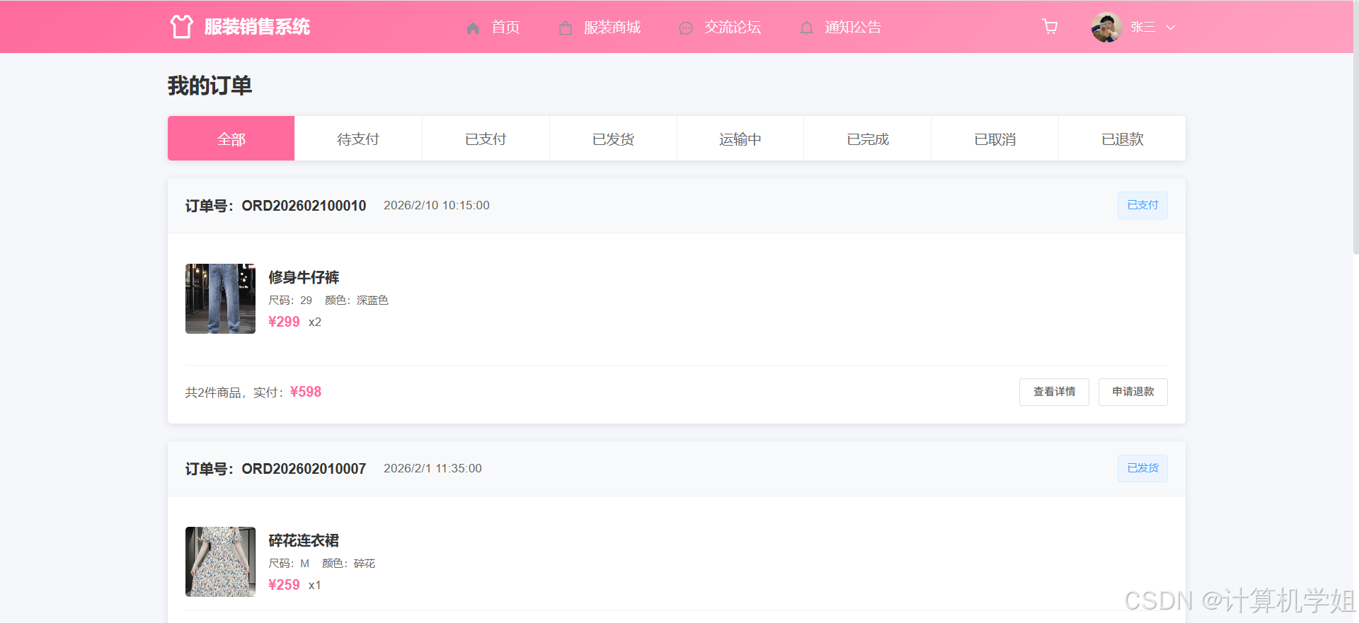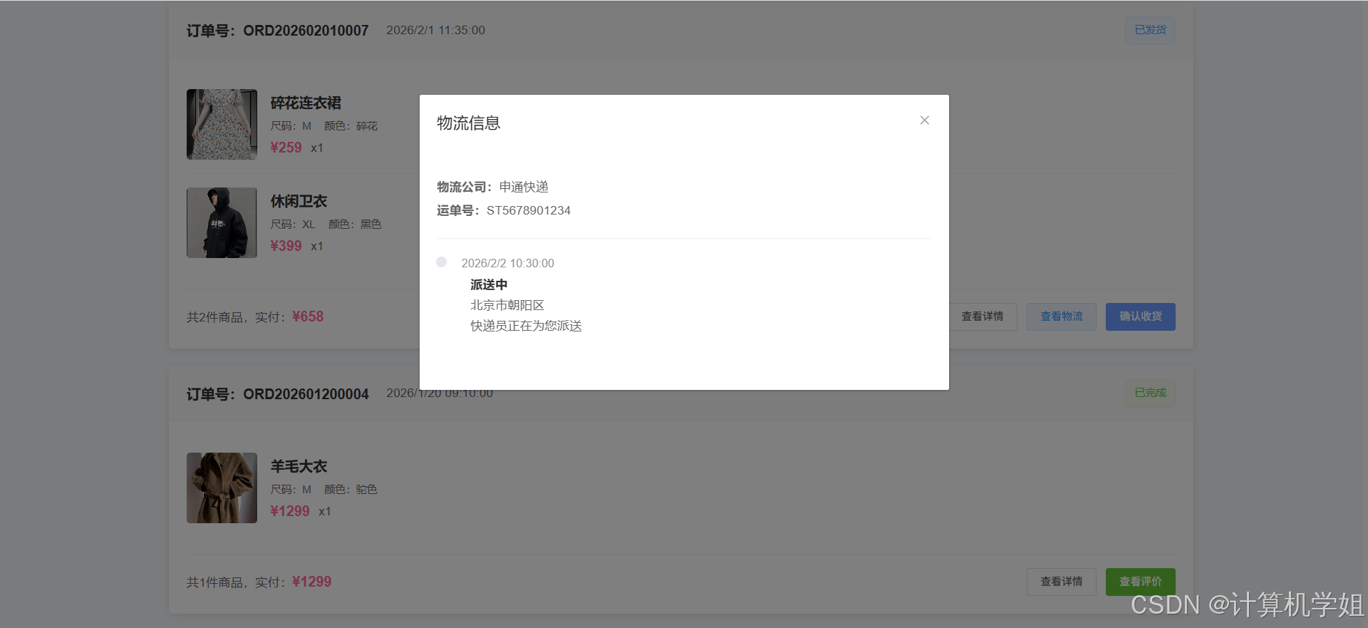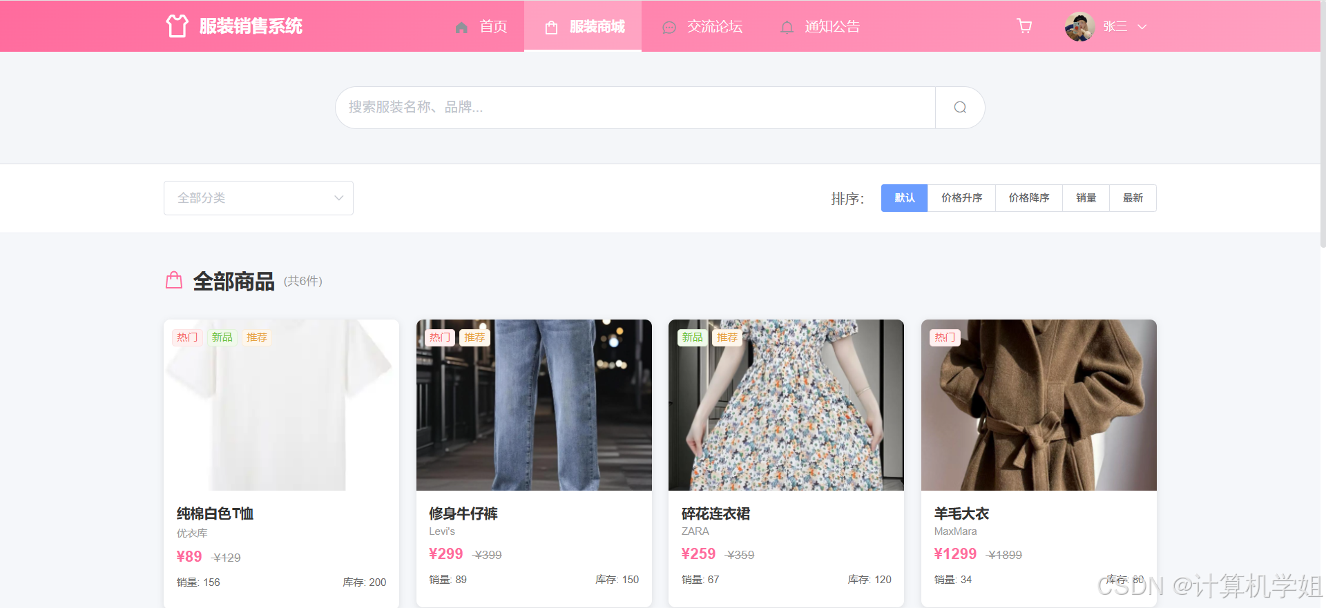 【2026最新】基于Java+SpringBoo+Vue+MySQL的服装购物商城销售系统,协同过滤推荐算法,数据可视化统计,服装商城,购物车,我的订单,收货地址,点赞收藏,交流论坛,库存管理,订单信息管理,物流信息管理,评价信息管理等