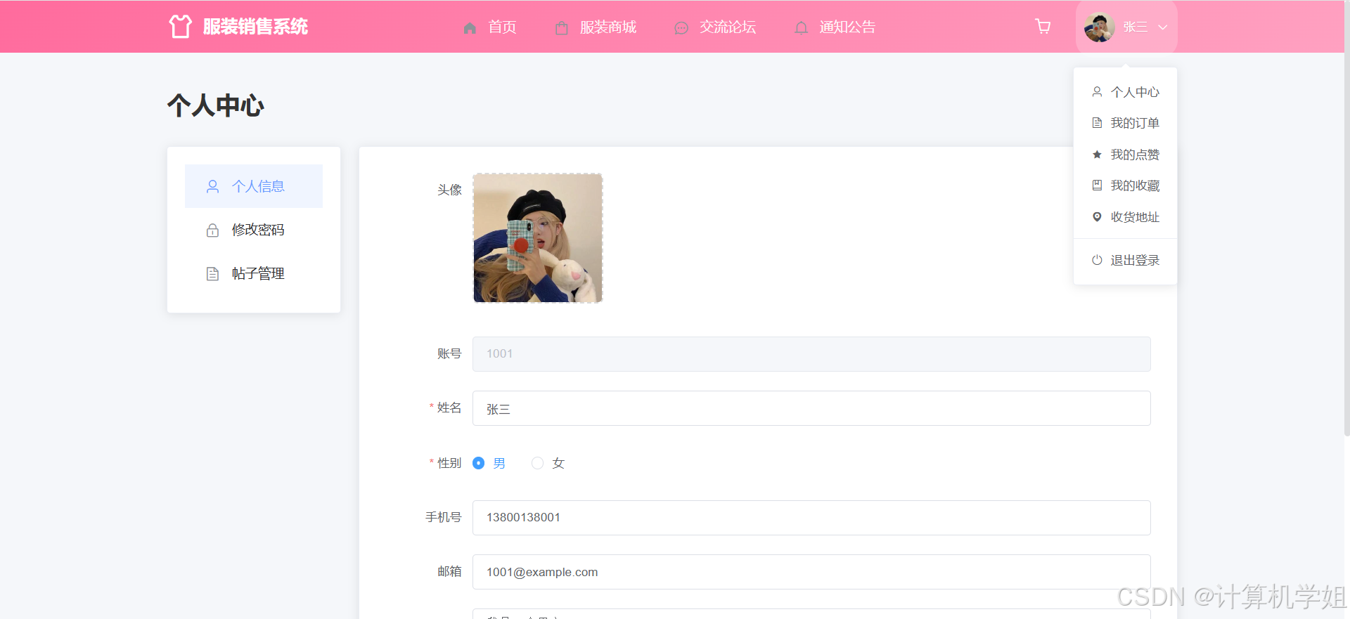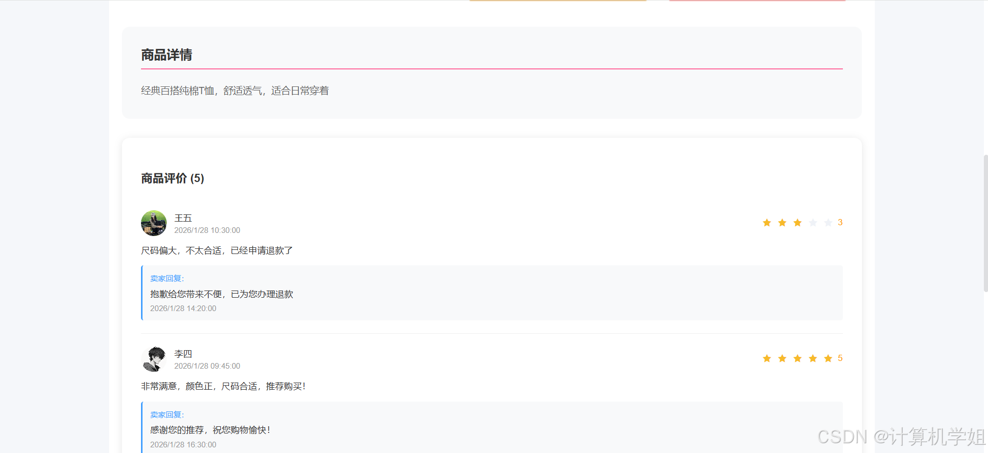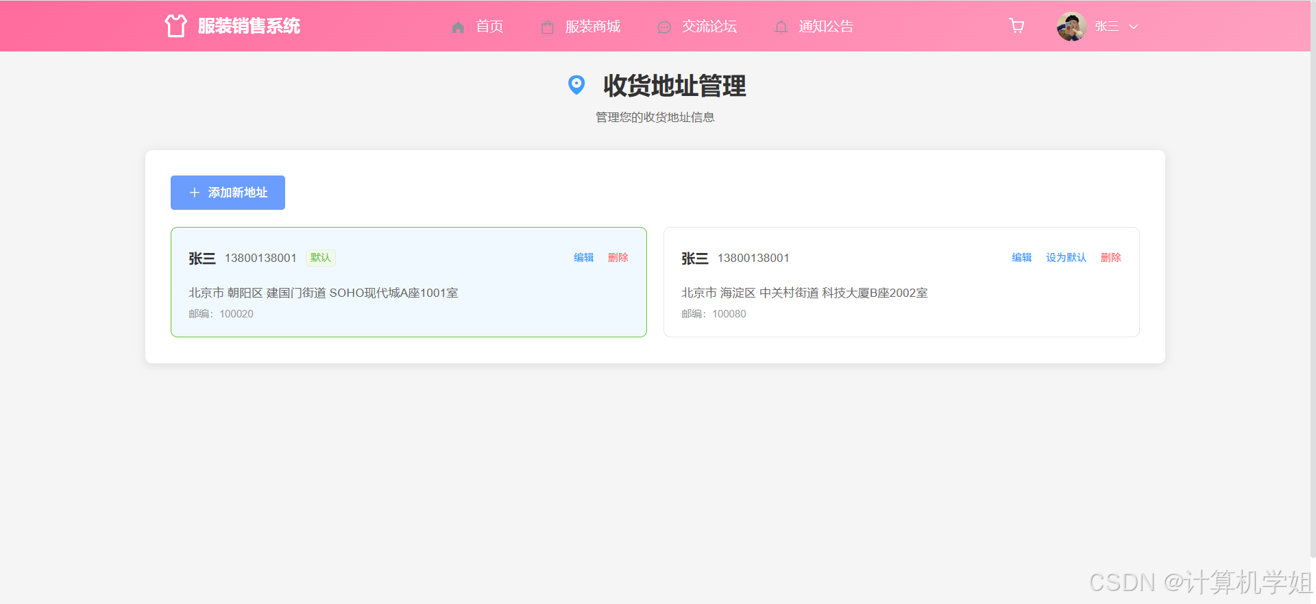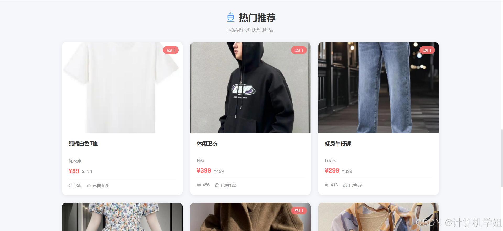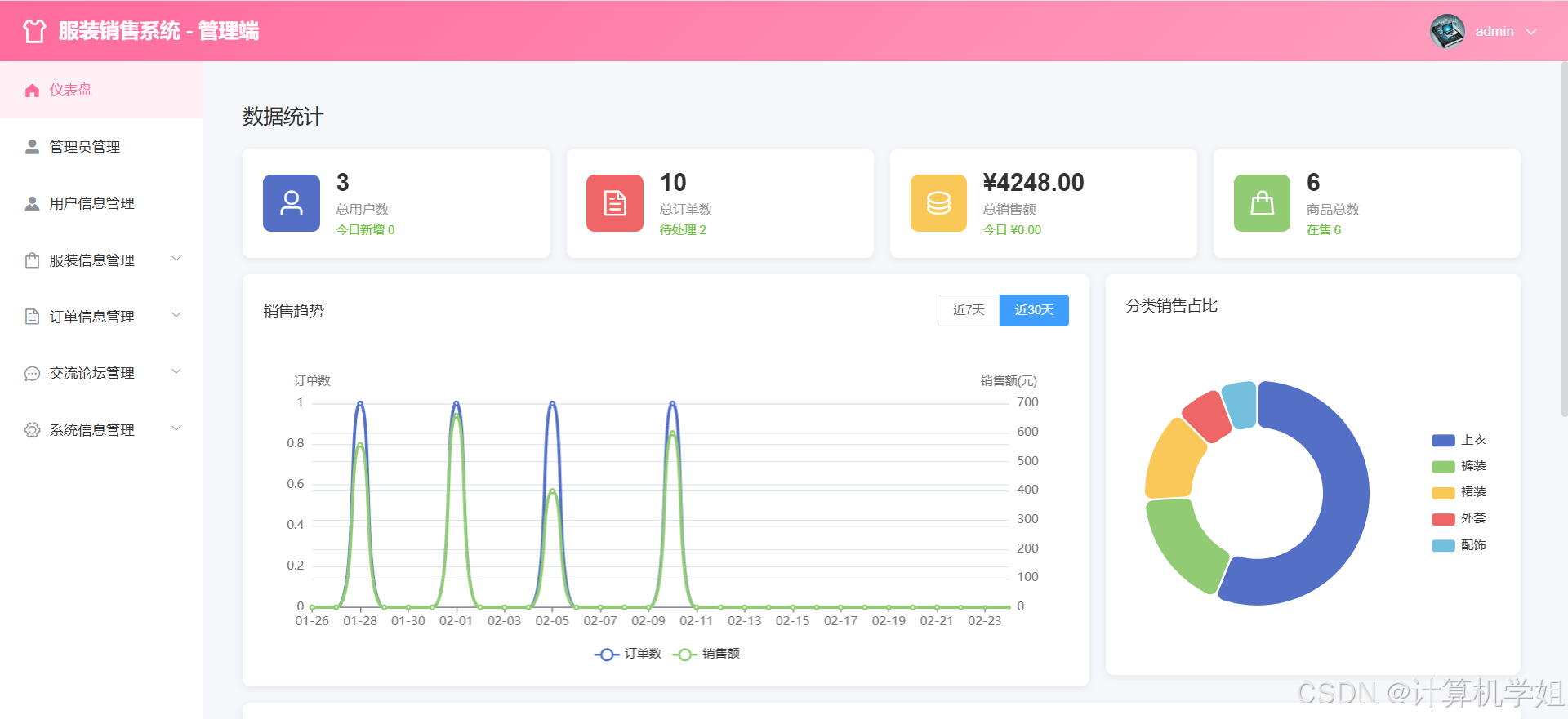 【2026最新】基于Java+SpringBoo+Vue+MySQL的服装购物商城销售系统,协同过滤推荐算法,数据可视化统计,服装商城,购物车,我的订单,收货地址,点赞收藏,交流论坛,库存管理,订单信息管理,物流信息管理,评价信息管理等