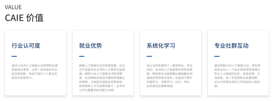 权威赋能:借助CAIE认证快速补齐AI刚需技能、获得行业认可------CAIE无编程门槛、重实操,完美适配非技术人士,其课程可快速搭建AI知识框架,融合非技术优势与AI技能,是提升转型成功率的核心支撑。