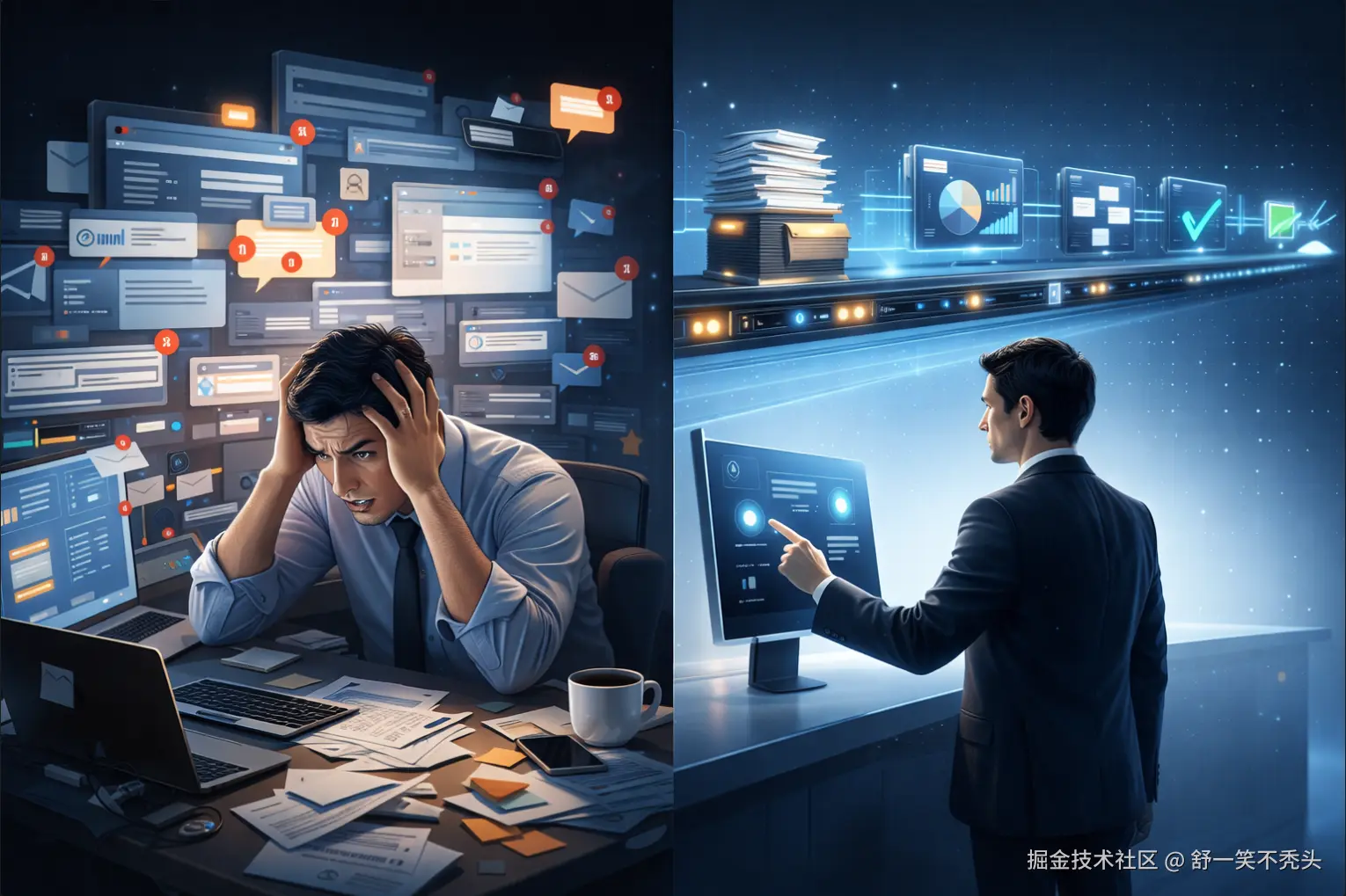 传统分工,你手动操作:查资料、比方案、写总结。注意力被榨,DAU成KPI王。