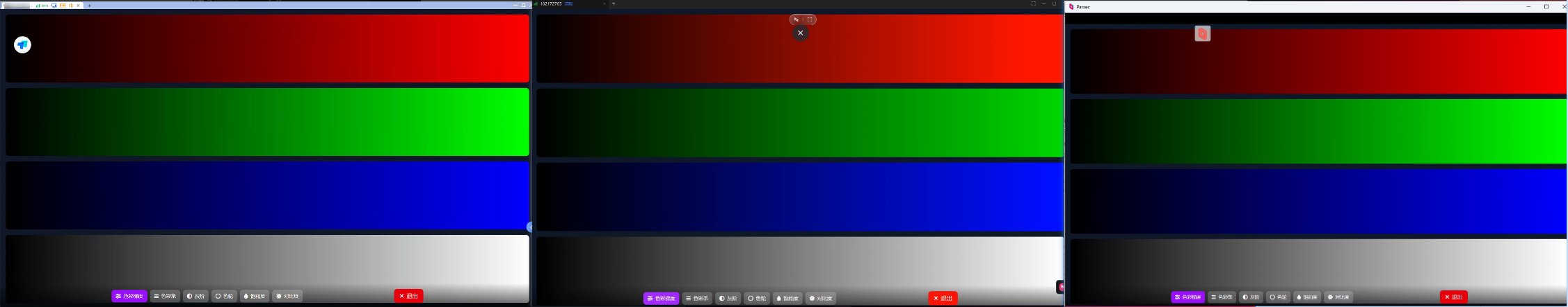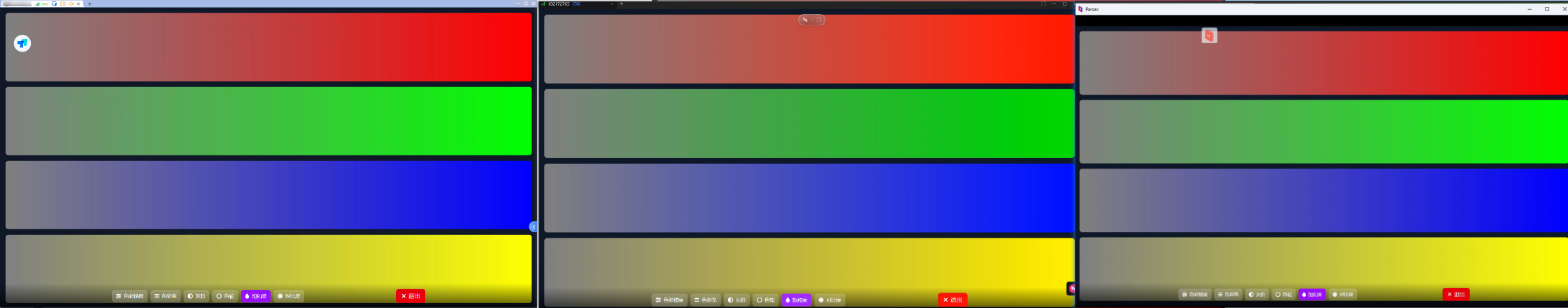 在此次视觉极限测试中,ToDesk、向日葵和Parsec在色彩梯度、饱和度、对比度以及暗部表现都十分优秀。其中ToDesk在色彩梯度的平滑过渡方面表现优异,提供了细腻而无断裂的渐变体验,确保色彩的精准度。同时,在饱和度和对比度测试中,ToDesk也能显现出更真实和一致的色彩。