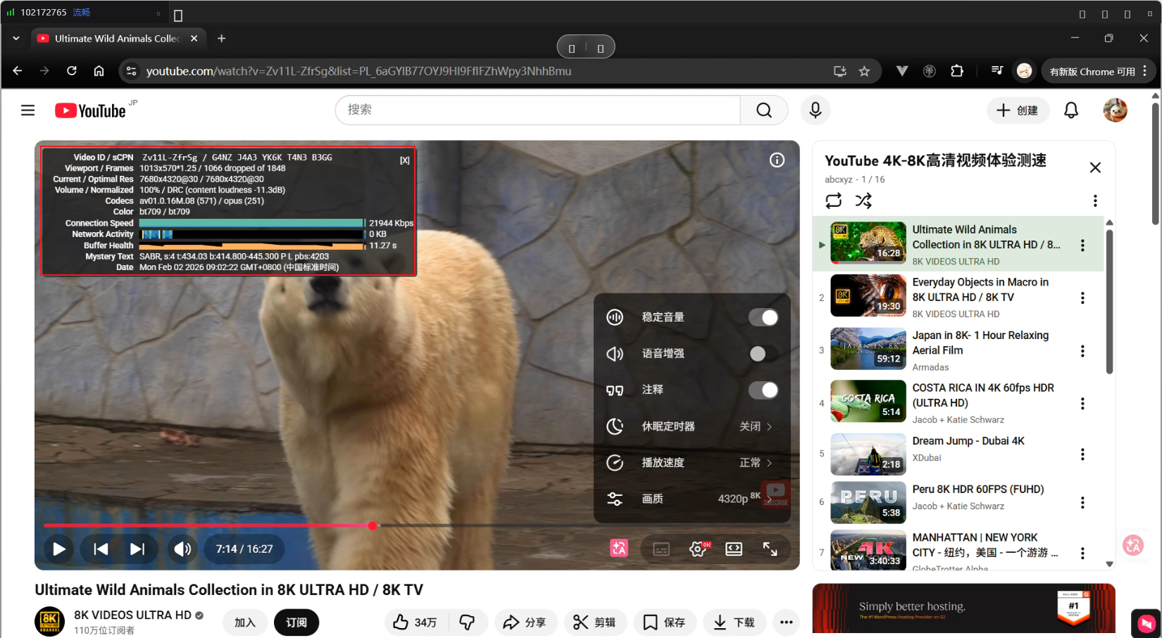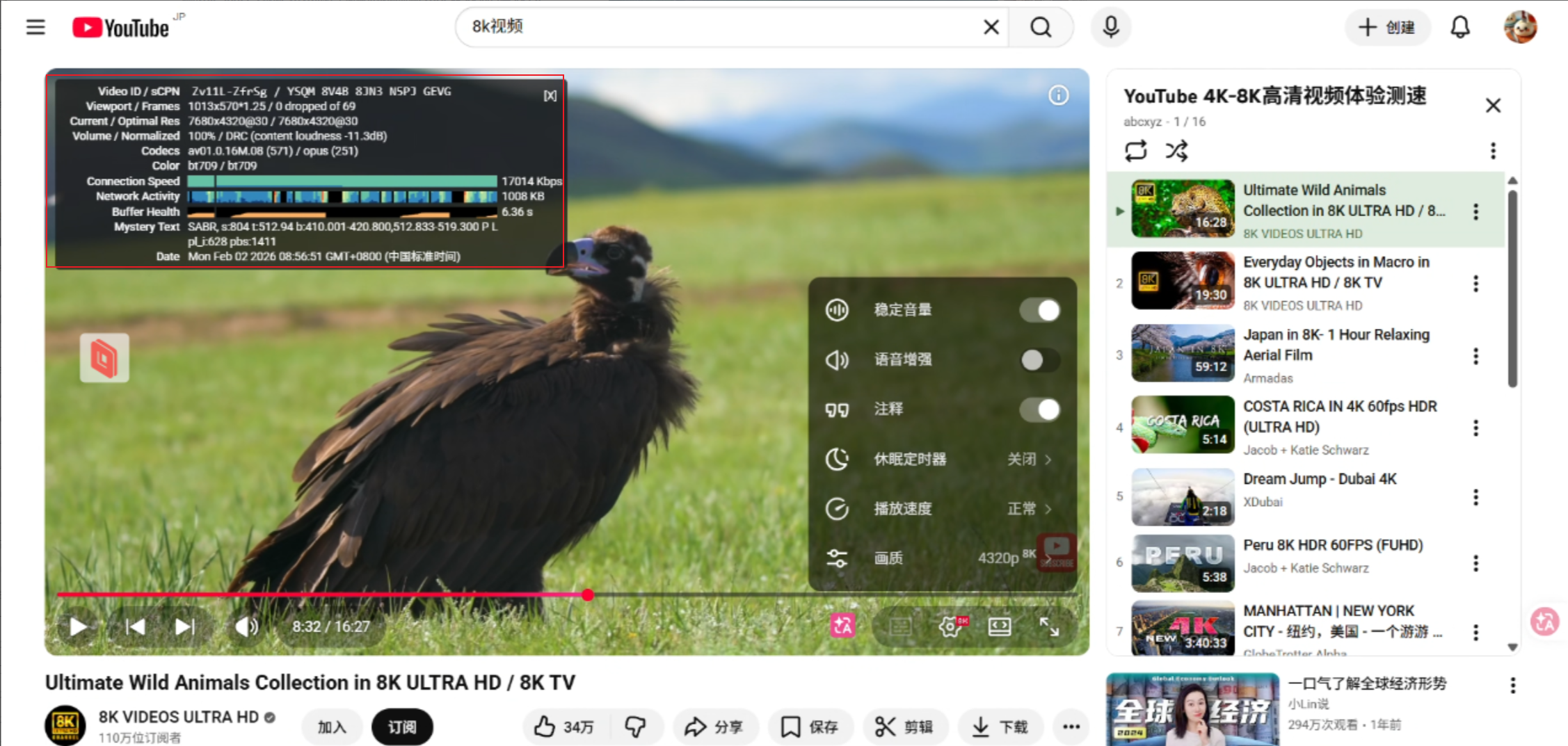 8K下的YouTube视频