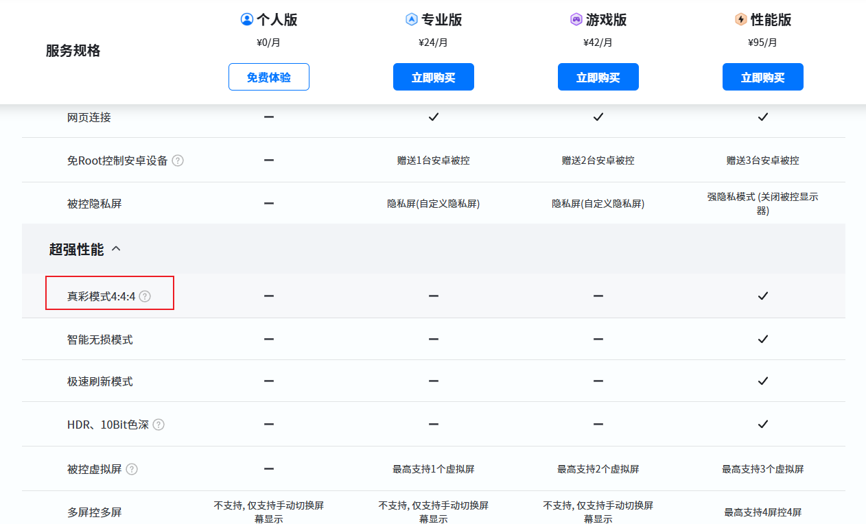 ToDesk在不同版本中提供了丰富的功能选择。性能版本支持真彩模式4:4:4,确保用户能够享受卓越的色彩表现。
