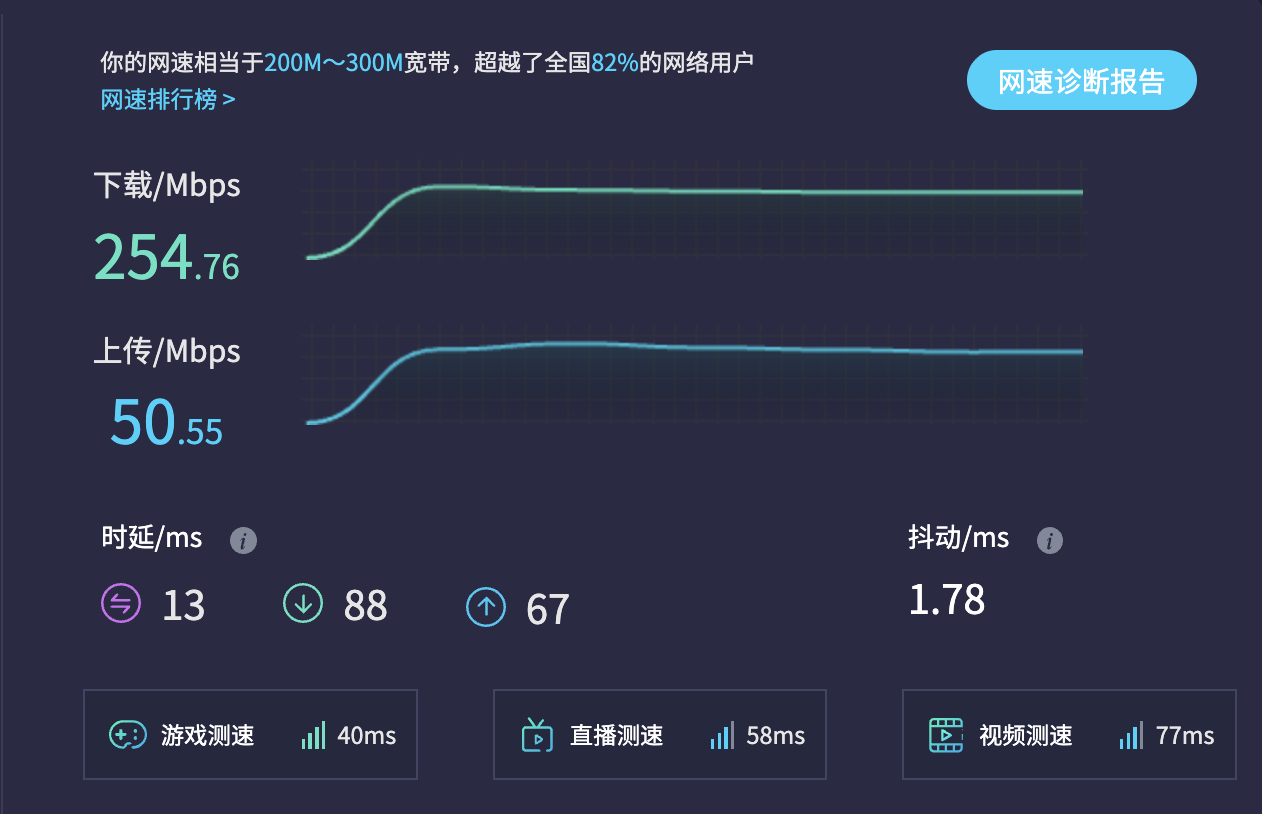 | 网络连接速率 | 59695Kbps | 21944 Kbps | 17014 kbps |