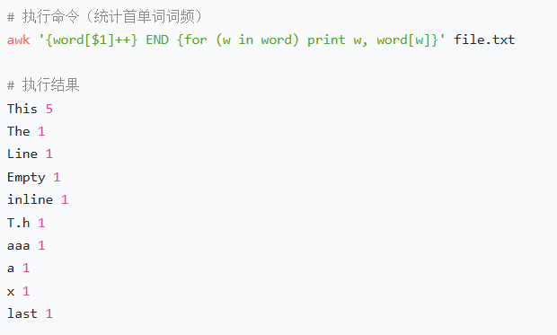 # 统计每行第一个单词的出现次数