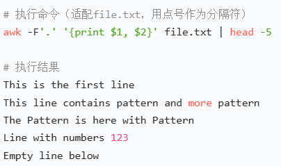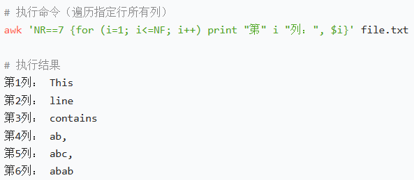 | 1−n | 第 1 到第 n 列内容 | awk '{print $1, $3}' test.txt(打印 1、3 列) |