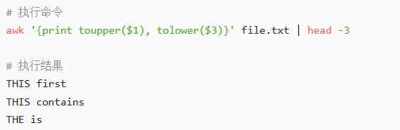 awk '{print toupper($1), tolower($3)}' file.txt | head -3