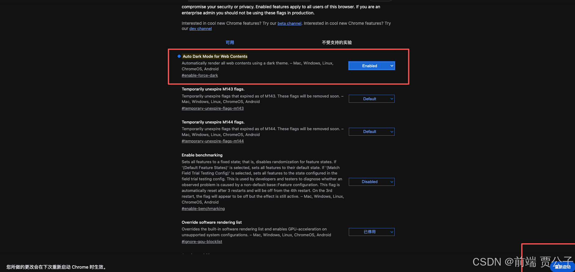 chrome 浏览器设置暗黑模式