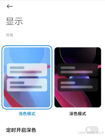 那么上述的这些属性到底具体表示的是什么意思呢?我们需要从实践中进行进一步的理解。我们在前言中说到现在很多系统都提供了"浅色模式"和"深色模式" ,其中手机系统不管是 IOS 还是安卓目前也都提供了这两种模式。