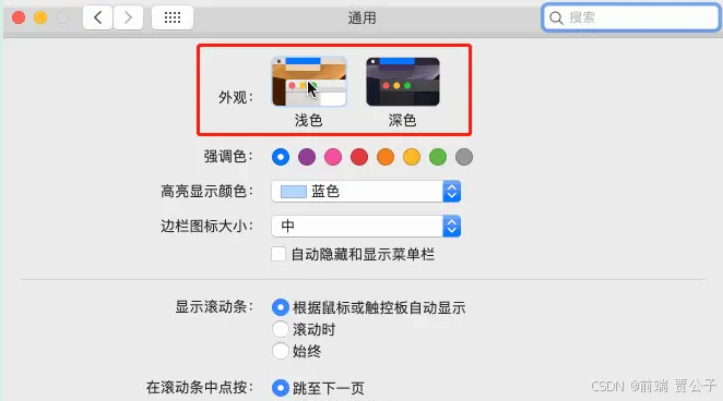 macOS系统中的"浅色模式"和"深色模式"设置。