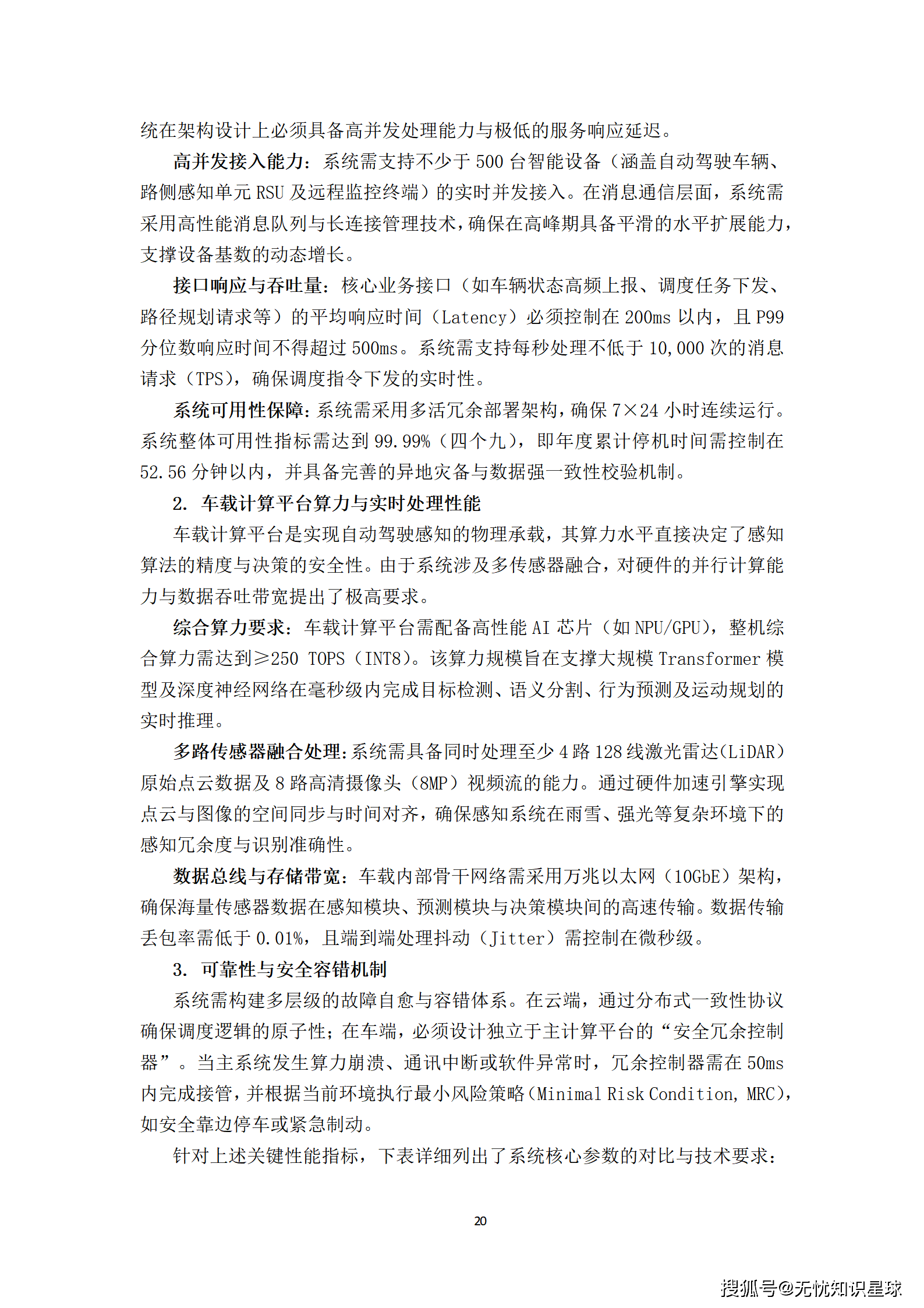 - 冗余设计:感知冗余(主雷达故障由视觉/毫米波接管)、计算冗余(双机热备)、执行冗余(独立安全控制器)。