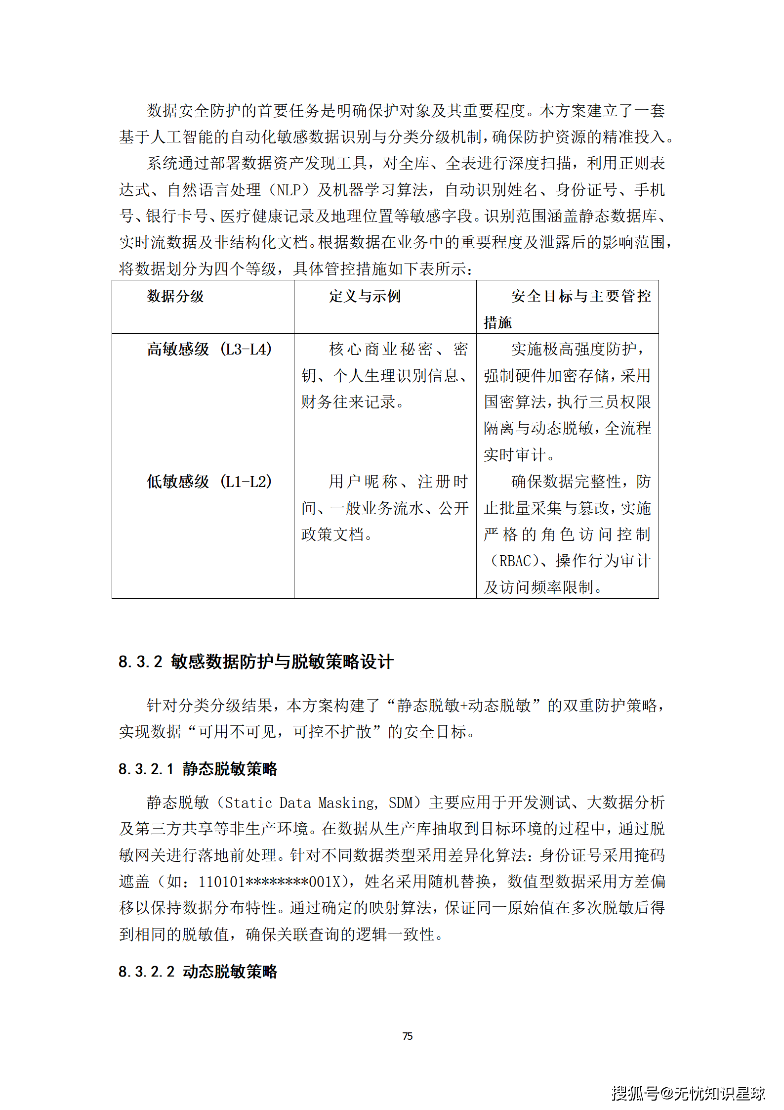 - 数据安全:实施分类分级管理,高敏感数据(L3-L4)强制硬件加密存储,采用国密SM2/SM4算法。建立静态脱敏(开发测试)与动态脱敏(生产查询)双重机制。