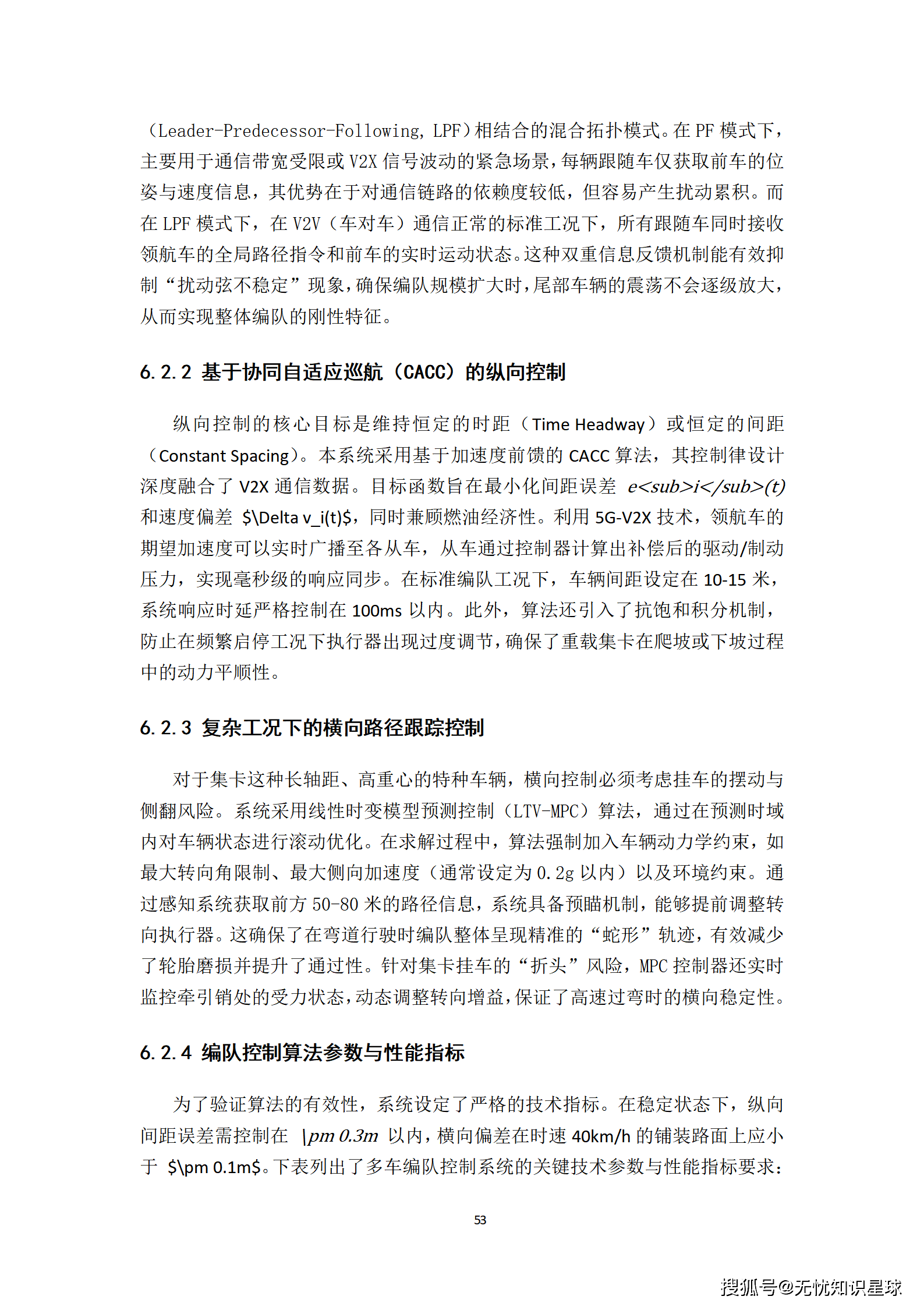 - 纵向控制(CACC) :基于加速度前馈的协同自适应巡航算法。利用5G-V2X广播领航车期望加速度,从车毫秒级响应,间距误差控制在**±0.3m**。