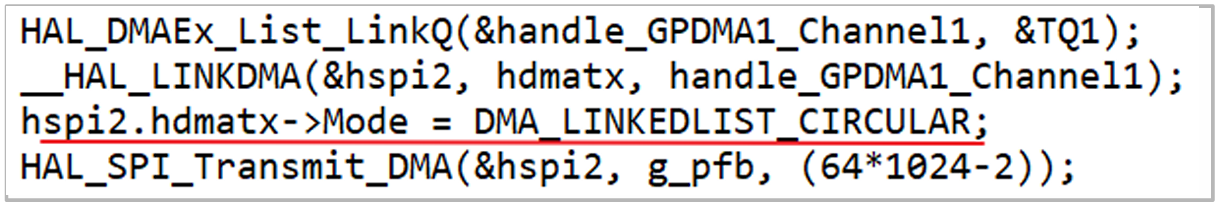 在实际调试中却发现,在准备好GPDMA链表后,调用HAL_SPI_Transmit_DMA函