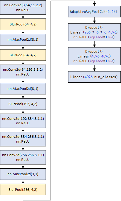 1、antialised-cnns 中的带blurePool 核的alexnet结构