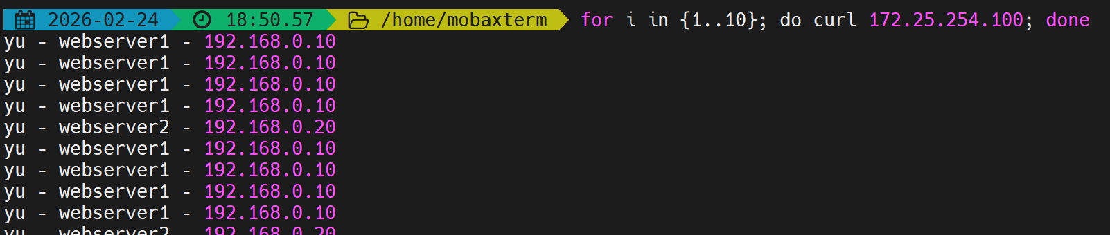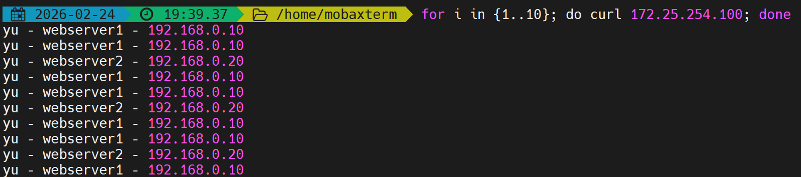 [root@webserver1 ~]# echo yu - webserver1 - 192.168.0.10 > /var/www/html/index.html