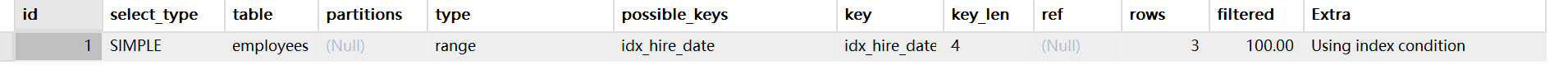EXPLAIN SELECT * FROM employees WHERE hire_date BETWEEN '2020-01-01' AND '2020-12-31';