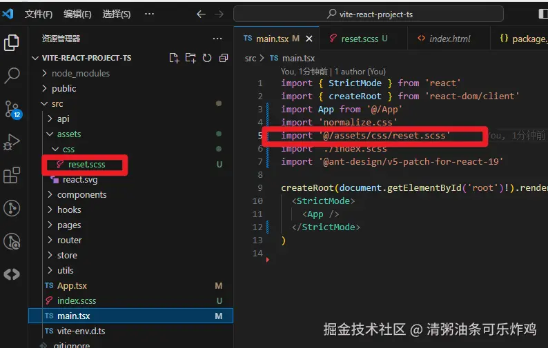 2.在main.ts中引入:import '@/assets/css/reset.scss'