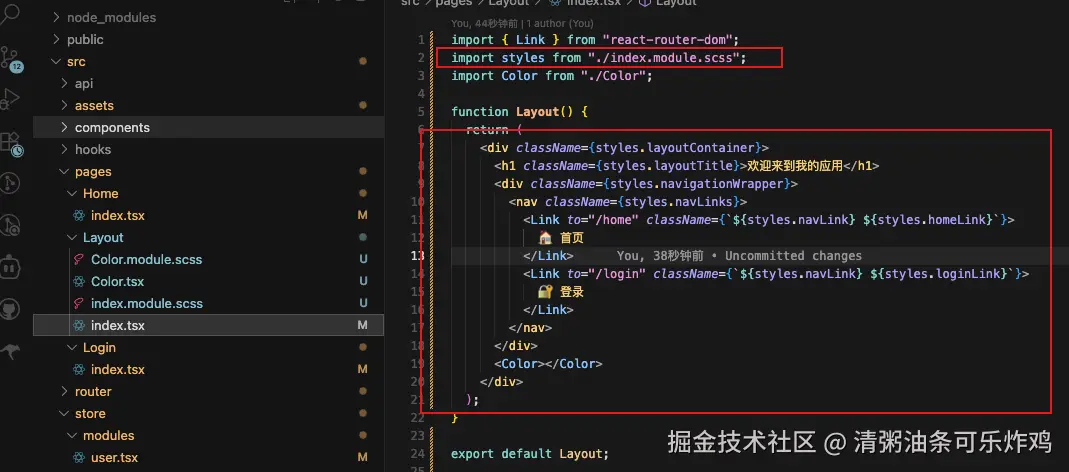 在pages页面下建立这三个文件夹(Home,Layout,Login ,记得是index.tsx文件)并写入最简单的代码