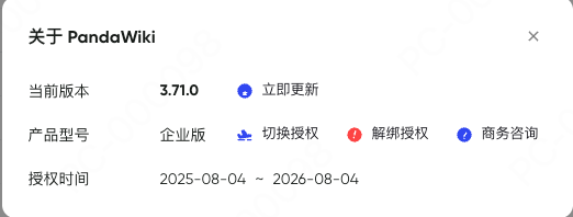 最省心的是更新机制。传统Wiki要么需要手动下载安装包,要么像DokuWiki那样依赖插件市场(还经常被墙),而PandaWiki后台直接有版本更新按钮,上周升级时甚至保留了我自定义的主题设置。