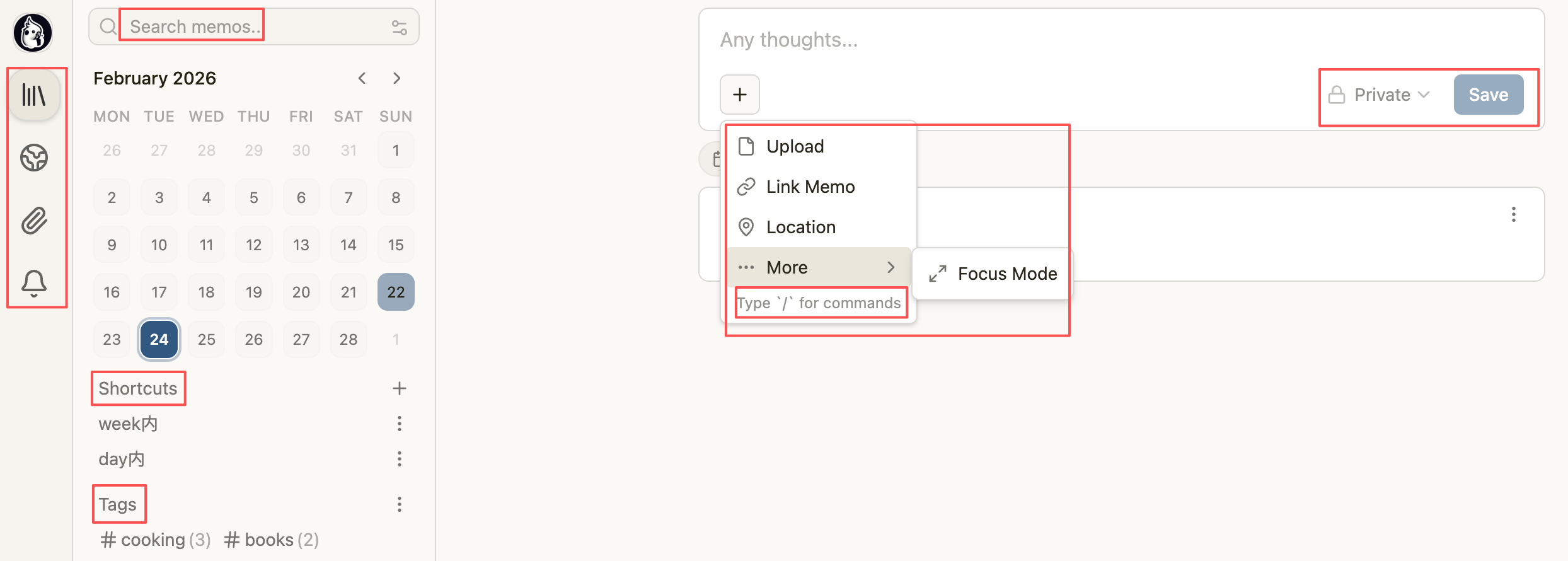 - 创建笔记:界面顶部有一个输入框,支持实时Markdown预览。输入完成后自动保存,无需点击任何按钮;