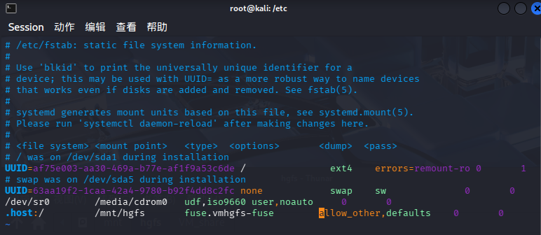 编辑 /etc/fstab 系统文件的挂载配置文件