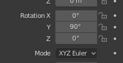 - rotation_euler[1] 是 y轴 设置为 1.5708