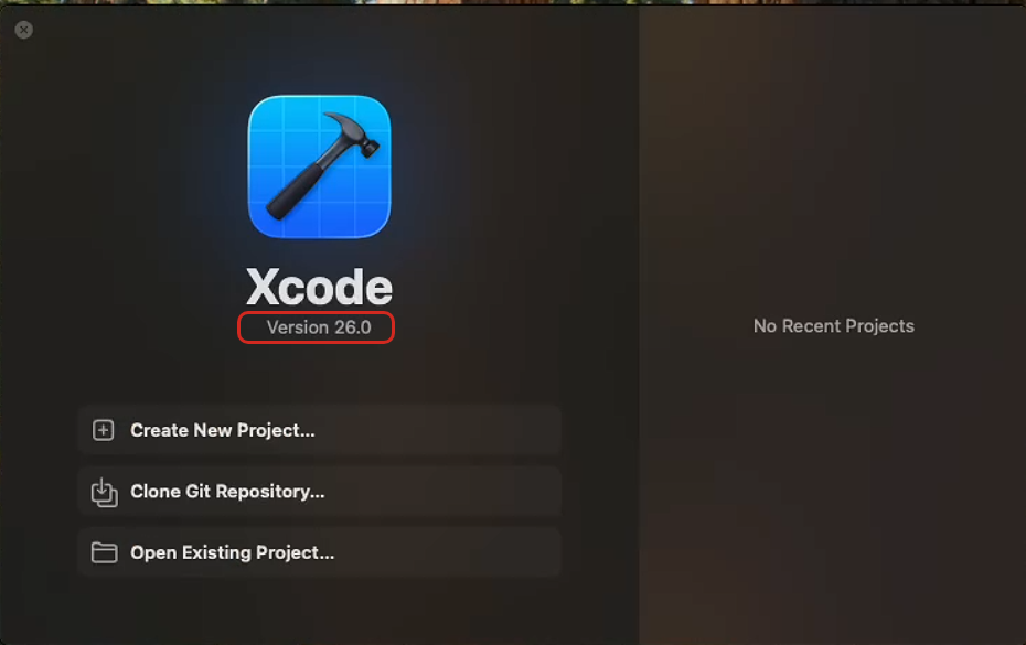 - 在欢迎界面可以直接看到版本号(例如 "Version 26.0")