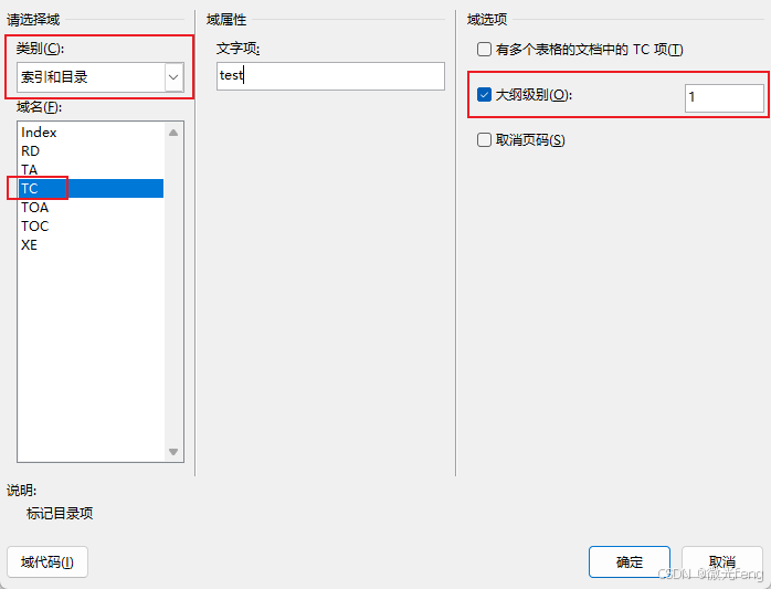 英文目录需要借助域代码生成,光标放置在标题后,点击开始→文本→文档部件→域,然后选择类别、域名和大纲级别,文字项可以后续加入。