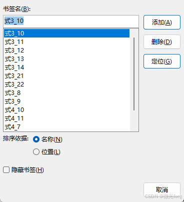 按照5.1加入章节号后,公式编号无法出现在交叉引用的编号项中。解决方法是使用书签进行引用。
