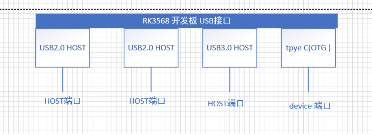 RK3568 有两个 USB 2.0 PHY, USB 3.0 OTG 控制器和 USB 3.0 Host_1 的控制器分别使用 USB 2.0 Comb PHY_0 的 port0 和 port1; USB 2.0 Host_2 控制器和 USB 2.0 Host_3 控制器分别使用 USB 2.0 Comb PHY_1 的 port0 和 port1。