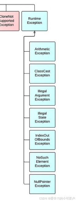 | CloneNotSupportedException | Object.clone() | 代码设计:类未实现 Cloneable 接口 | 实现接口或改用拷贝构造器 |