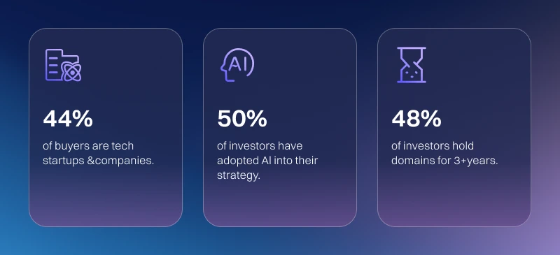 除了平台更新,我们还分享了研究和见解,以帮助您把握域名行业的脉络。我们的《2025年域名行业洞察》报告着眼于更广泛的市场趋势及其对投资者的意义。以下是该调查中的部分统计数据: