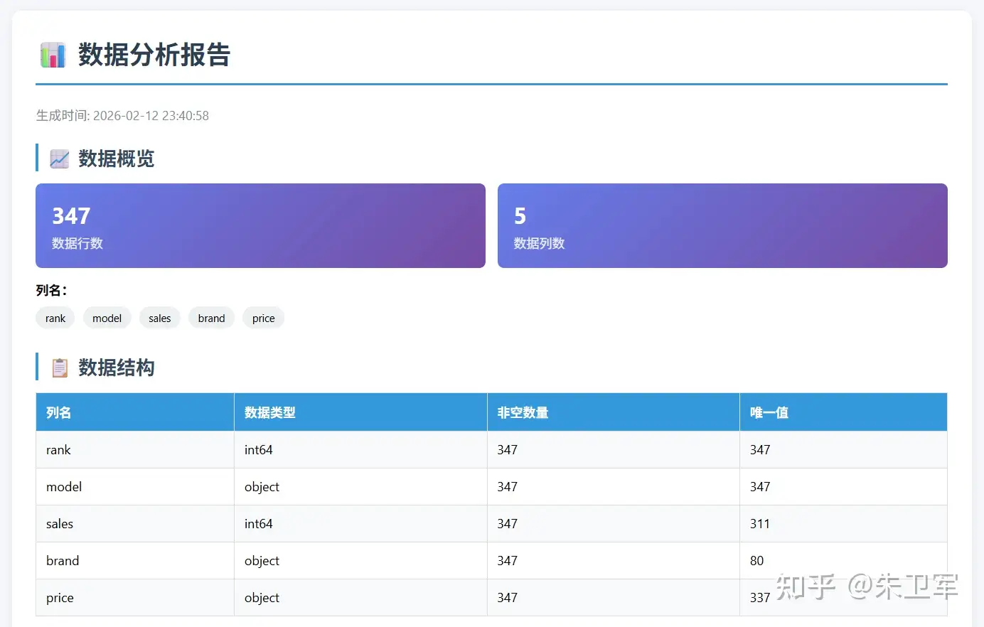 比如分析一个汽车销量数据,M2.5会对Excel数据进行读取、分析、可视化,并输出分析报告。