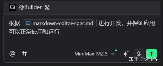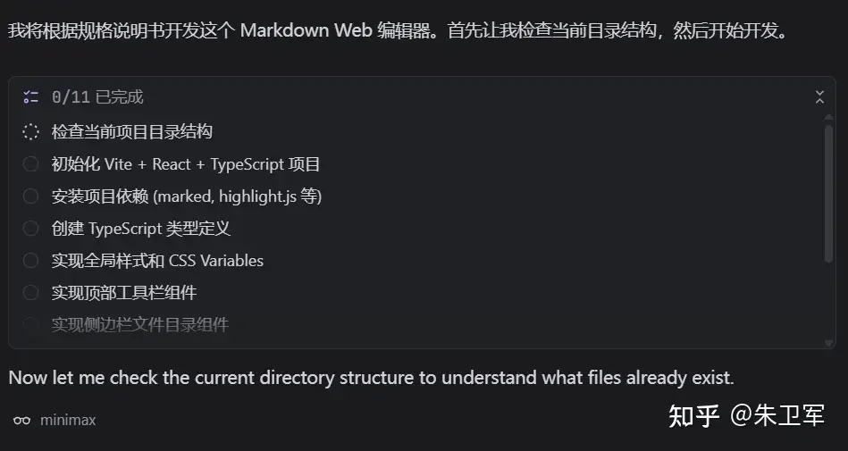 最后在对话框输入开发指令,这样M2.5就会开始写代码。