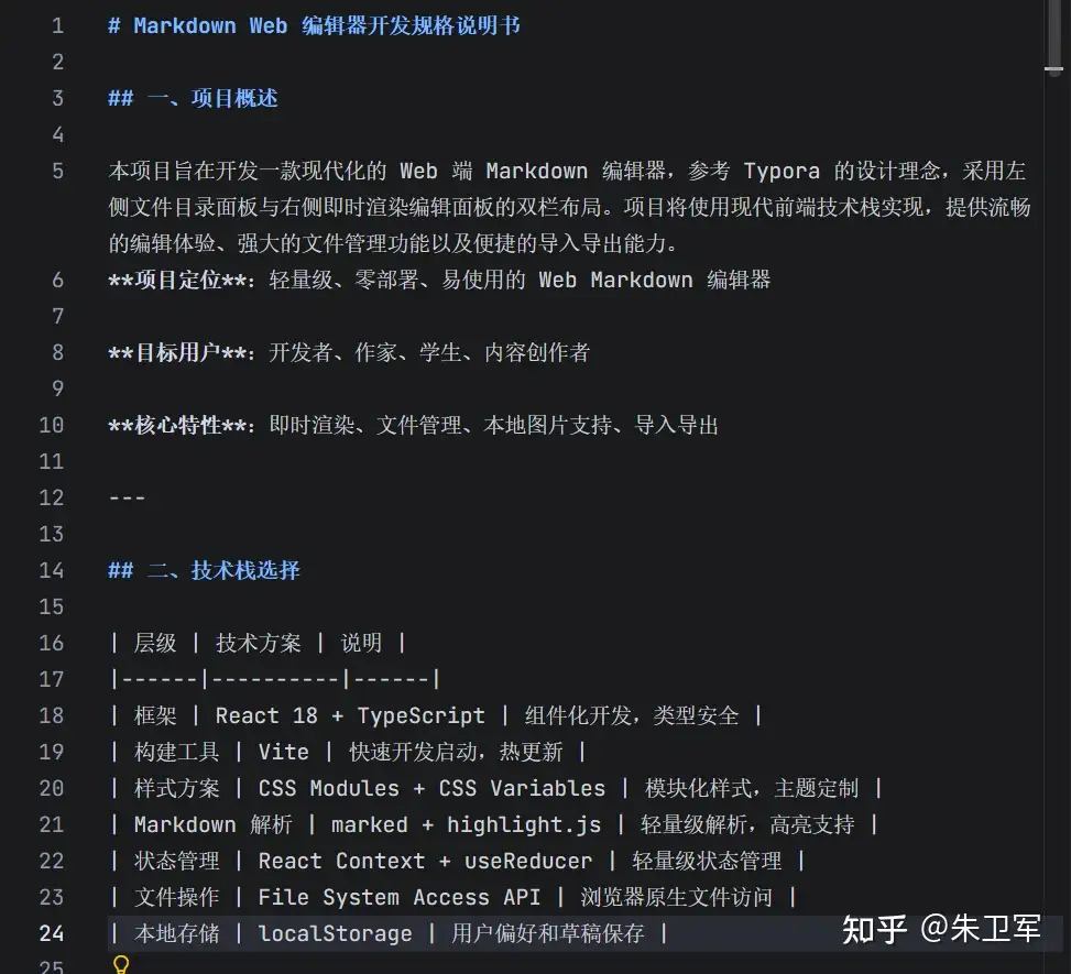 你会得到如下的开发文档markdown-editor-spec.md,每次生成都会有差异,可以按需修改。