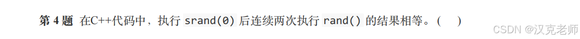 执行 srand(0) 后连续两次 rand() 的结果相等。( )