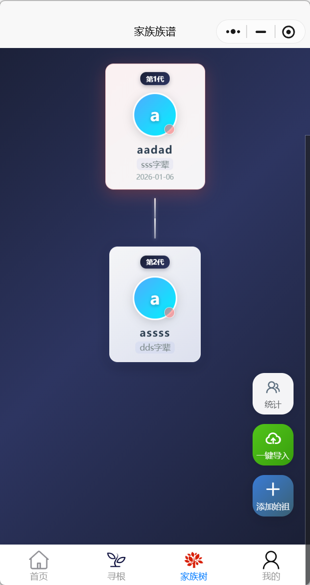 ✅ 信息录入:支持姓名、性别、辈分、生卒年月等基础字段