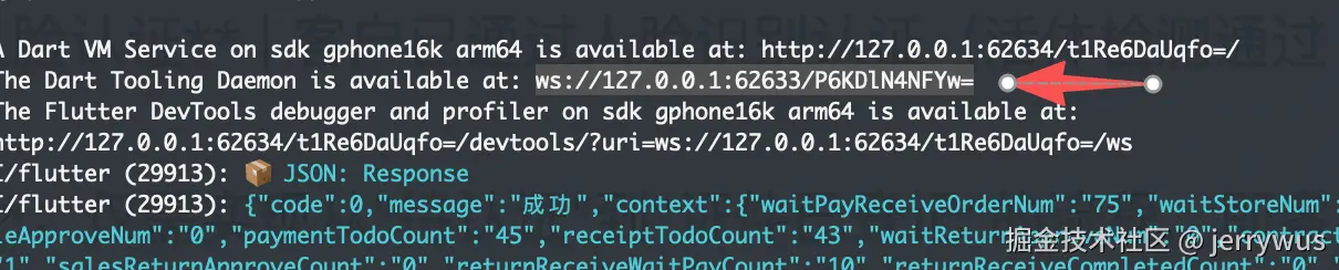 启动应用后,终端会打印 DTD 地址: