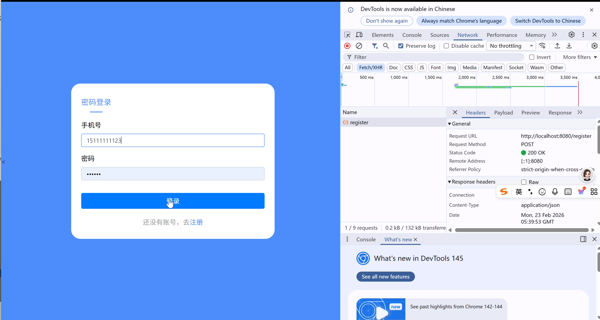 调用的登录接口:http://localhost:8080/password/login