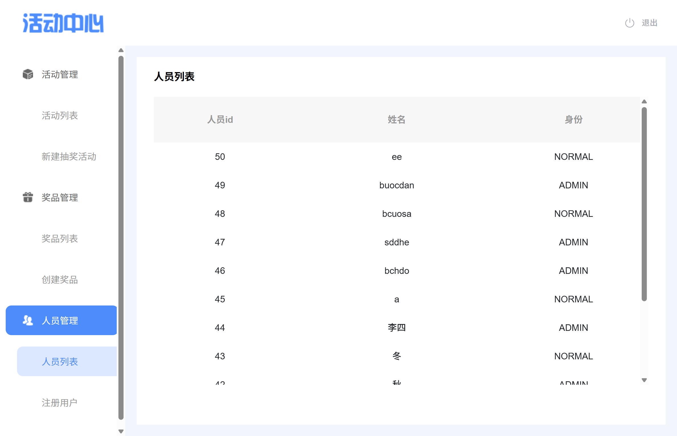 - 人员管理:管理员支持创建普通用户,查看用户列表
